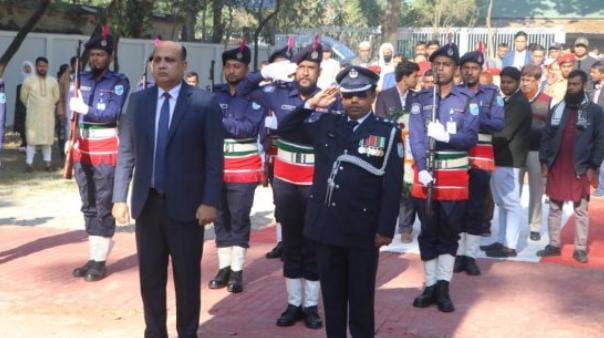 কর্মসূচির শুরুতে জেলা প্রশাসনের পক্ষে জেলা প্রশাসক ও বিজ্ঞ জেলা ম্যাজিস্ট্রেট মো. আরিফ-উজ-জামান এবং জেলা পুলিশ প্রশাসনের পক্ষে পুলিশ সুপার মো. হাবীবুল্লাহ শহীদ স্মৃতিস্তম্ভের বেদীতে পুষ্পস্তবক অর্পণ করে শহীদ বুদ্ধিজীবীদের প্রতি গভীর শ্রদ্ধা নিবেদন করেন। এ সময় জেলা পুলিশের একটি সুসজ্জিত চৌকস দল শহীদদের প্রতি সশস্ত্র সালাম প্রদান করে।