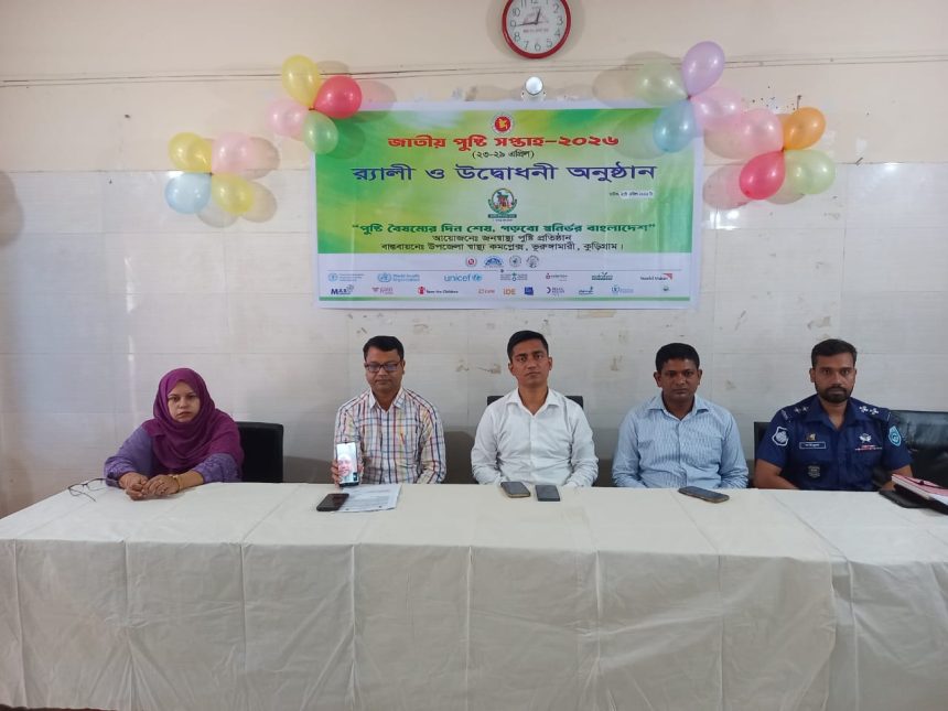 কুড়িগ্রাম জেলার ভূরুঙ্গামারী উপজেলা স্বাস্থ্য কমপ্লেক্সে জাতীয় পুষ্টি সপ্তাহ রেলি ও উদ্বোধনী অনুষ্ঠান অনুষ্ঠিত হয়েছে।