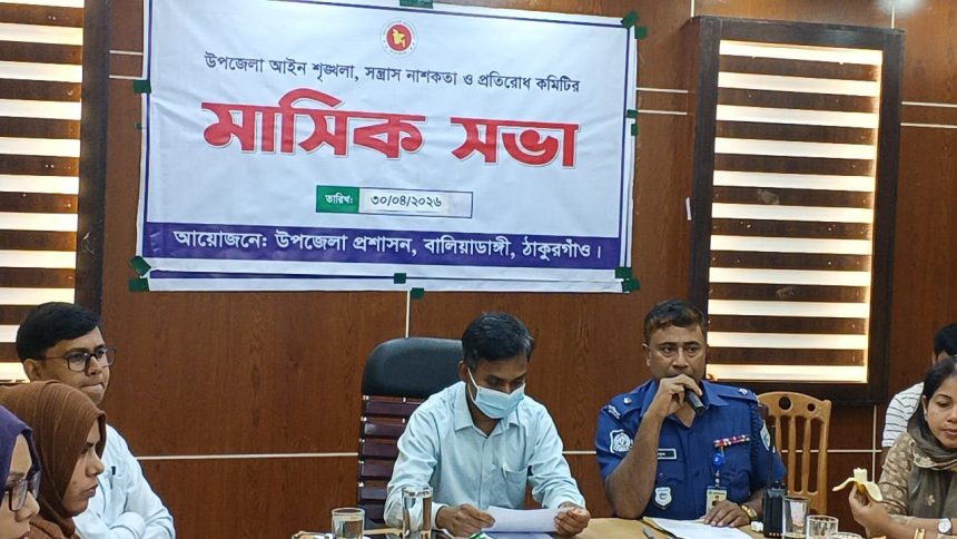 ঠাকুরগাঁওয়ের বালিয়াডাঙ্গী উপজেলা প্রশাসনের উদ্যোগে আইন-শৃঙ্খলা কমিটির মাসিক সভা অনুষ্ঠিত হয়েছে।
