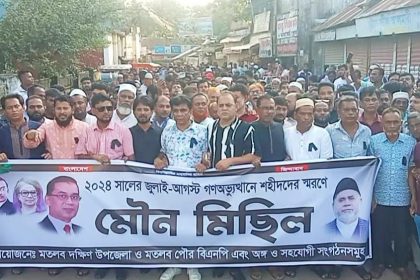 মতলবে বিএনপির আয়োজনে গণঅভ্যুত্থানে শহীদদের স্মরণে মৌন মিছিল