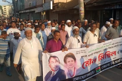 চাঁদপুরে শোক ও বিজয়ের বর্ষপূর্তি উপলক্ষে জেলা বিএনপির মৌন মিছিল