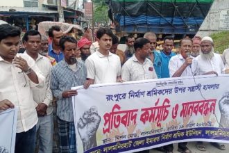 রংপুরে নির্মাণ শ্রমিকদের উপর সন্ত্রাসী হামলার প্রতিবাদ কর্মসূচি ও মানববন্ধন অনুষ্ঠিত