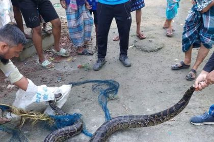 গজারিয়া কৃষকের জালে ধরা পড়ল ৯ ফুট লম্বা অজগর