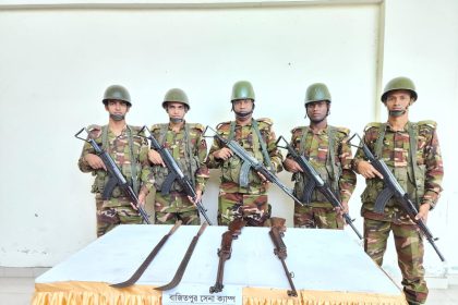 বাজিতপুরে আর্মি ক্যাম্পের বিশেষ অভিযানে অস্ত্র ও রামদা উদ্ধার