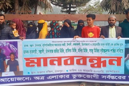 মতলবে মাদক ব্যবসায়ী, সন্ত্রাসী ও চাঁদাবাজদের বিরুদ্ধে মানববন্ধন