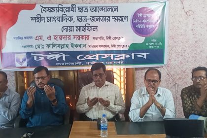 টঙ্গী প্রেসক্লাবের নির্বাচন কমিশনের পরিচিত ও শহীদ সাংবাদিক, ছাত্র-জনতার স্মরণে দোয়া