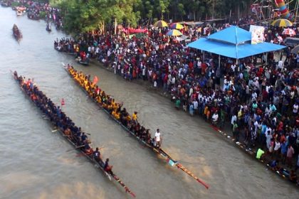 মাগুরার মোহাম্মদপুরের ঝামা বাজারের মধুমতি নদীতে নৌকা বাইচ অনুষ্ঠিত