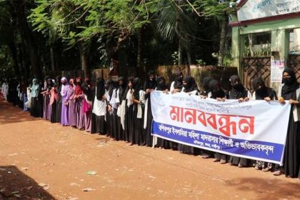 ফেনীতে নির্মম হত্যাকাণ্ডের প্রতিবাদে মানববন্ধন