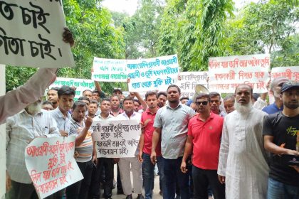 প্রাথমিক বৃত্তি পরীক্ষায় বেসরকারি শিক্ষার্থীদের অন্তর্ভুক্তির দাবিতে সাপাহারে মানববন্ধন