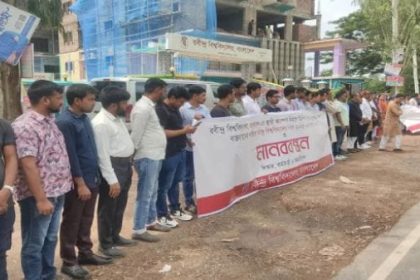 রবীন্দ্র বিশ্ববিদ্যালয়ের স্থায়ী ক্যাম্পাস নির্মাণের দাবীতে অনুষ্ঠিত মানববন্ধন