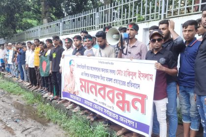 মাগুরায় মিথ্যা মামলা প্রত্যাহারের দাবীতে মানববন্ধন