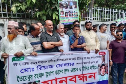 মাগুরায় রিয়াজ হত্যাকাণ্ডের ঘটনায় জড়িতদের শাস্তির দাবিতে মানববন্ধন